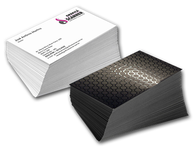 Confecção de Cartões de Visita com fino acabamento, com corte reto ou arredondado.